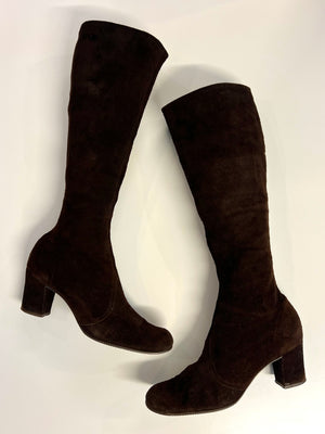 vintage chocolate brown suede knee high boots 60s