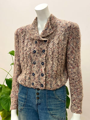 vintage handknit marled yarn double breasted cropped cardigan sweater 80s