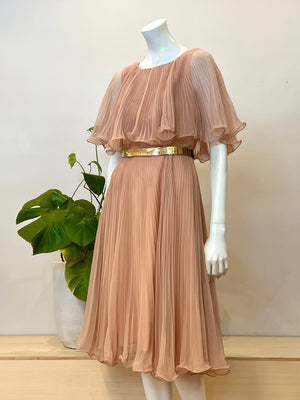 vintage Miss Elliette blush pleated chiffon party dress 60s