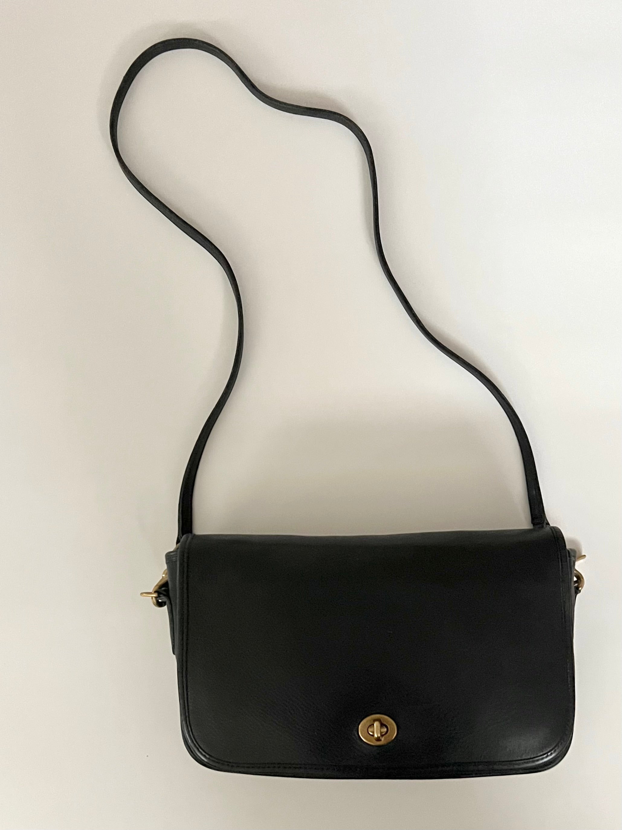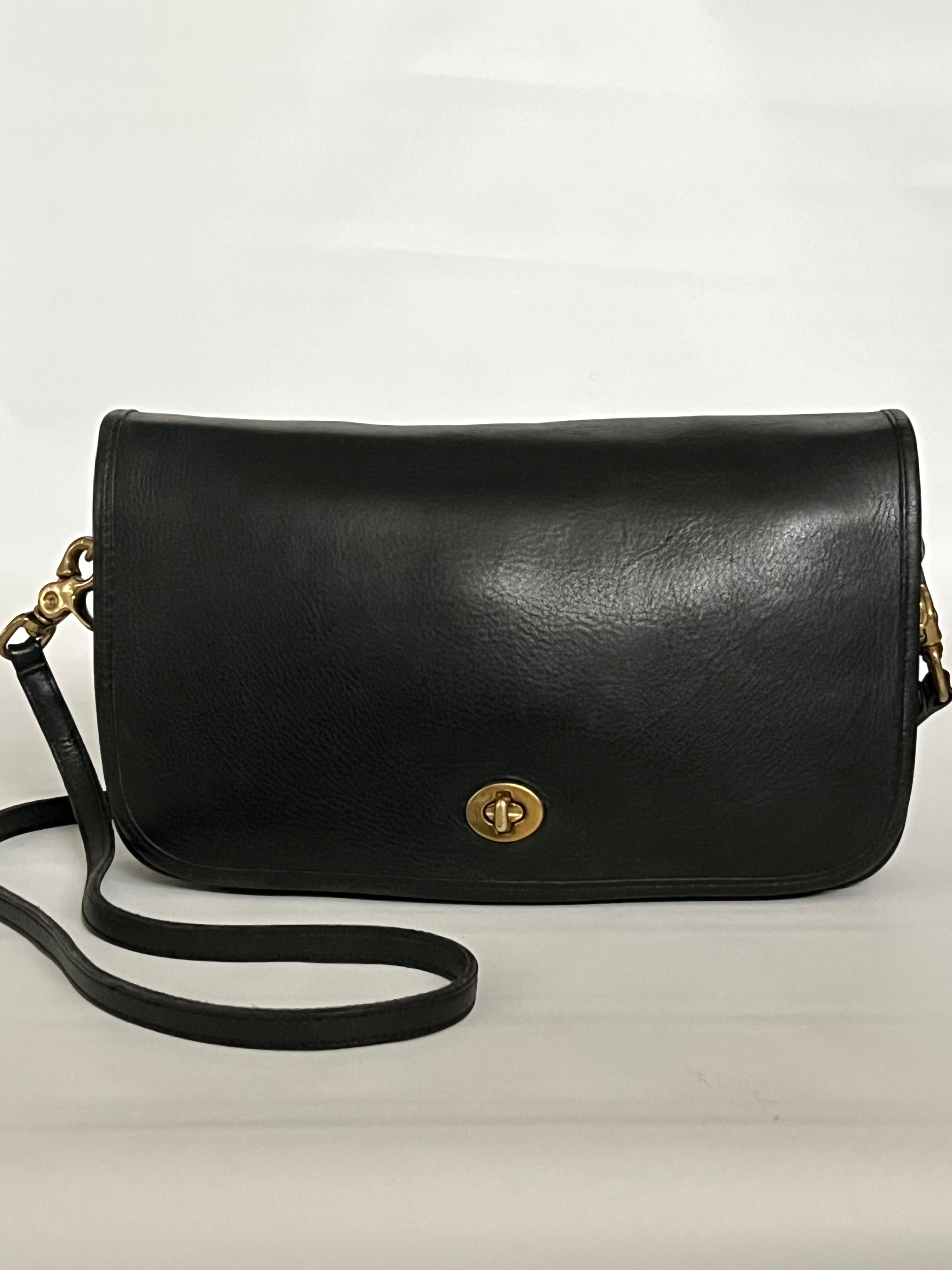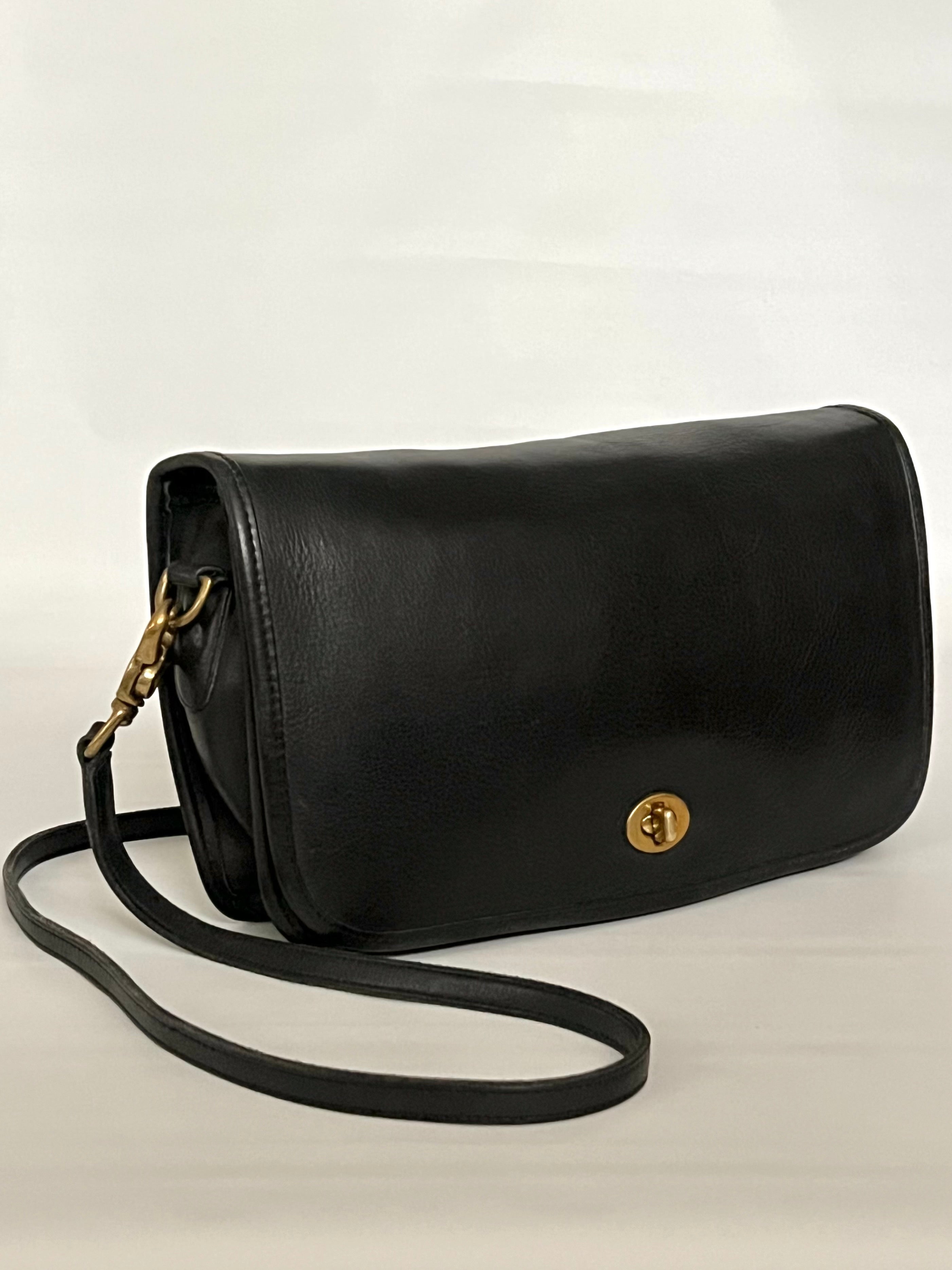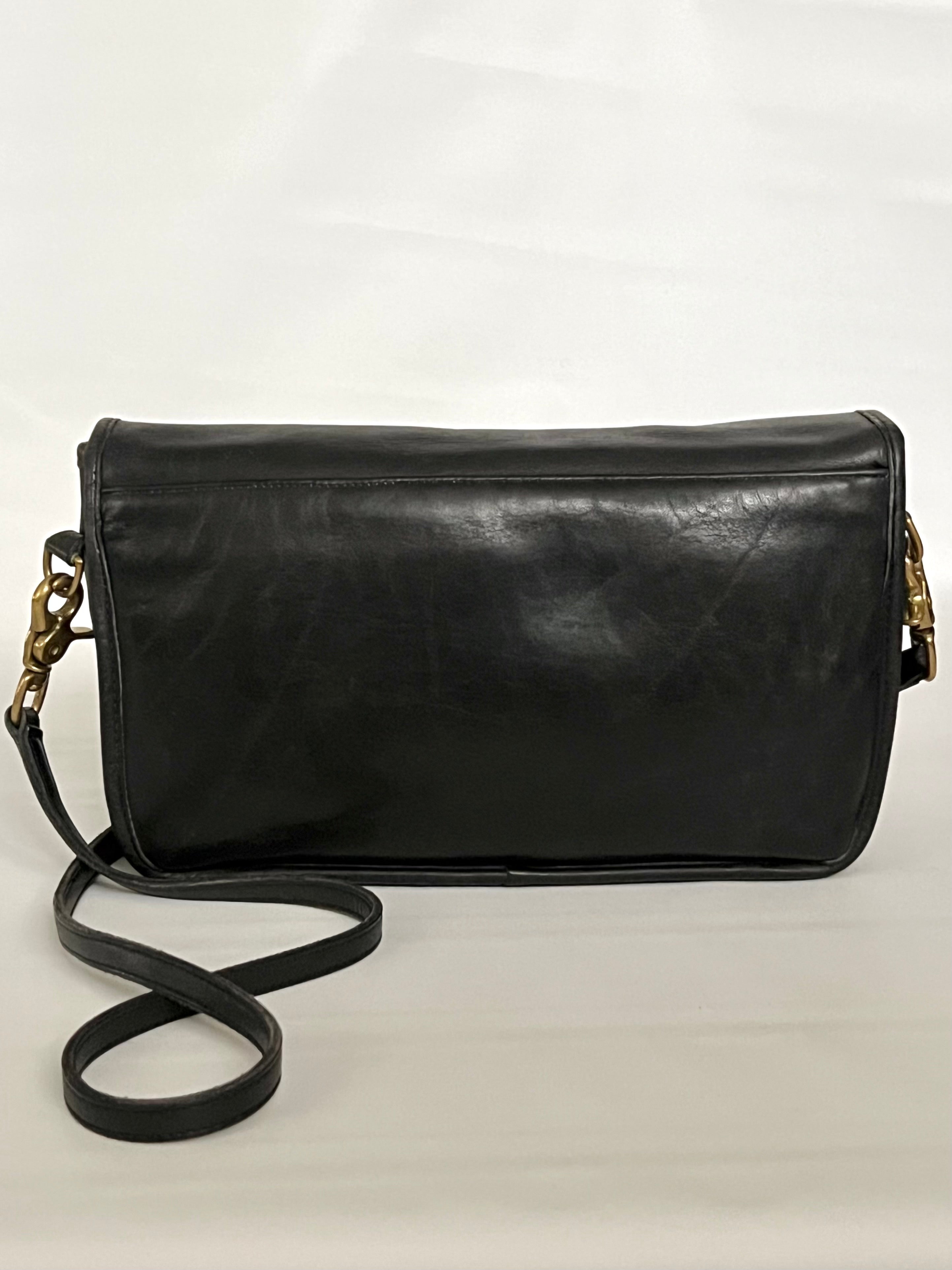 vintage Coach black leather convertible clutch handbag 80s