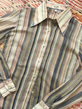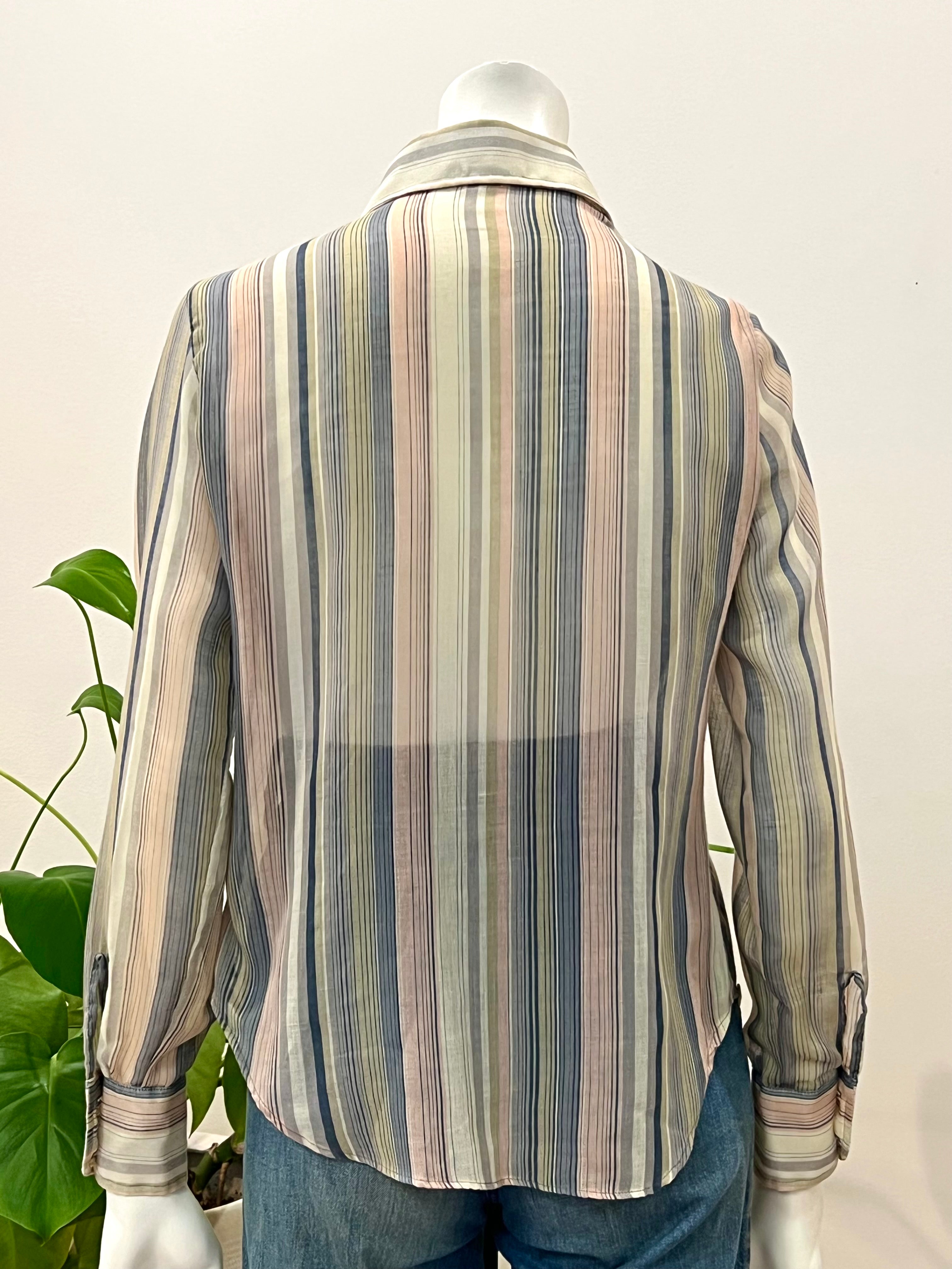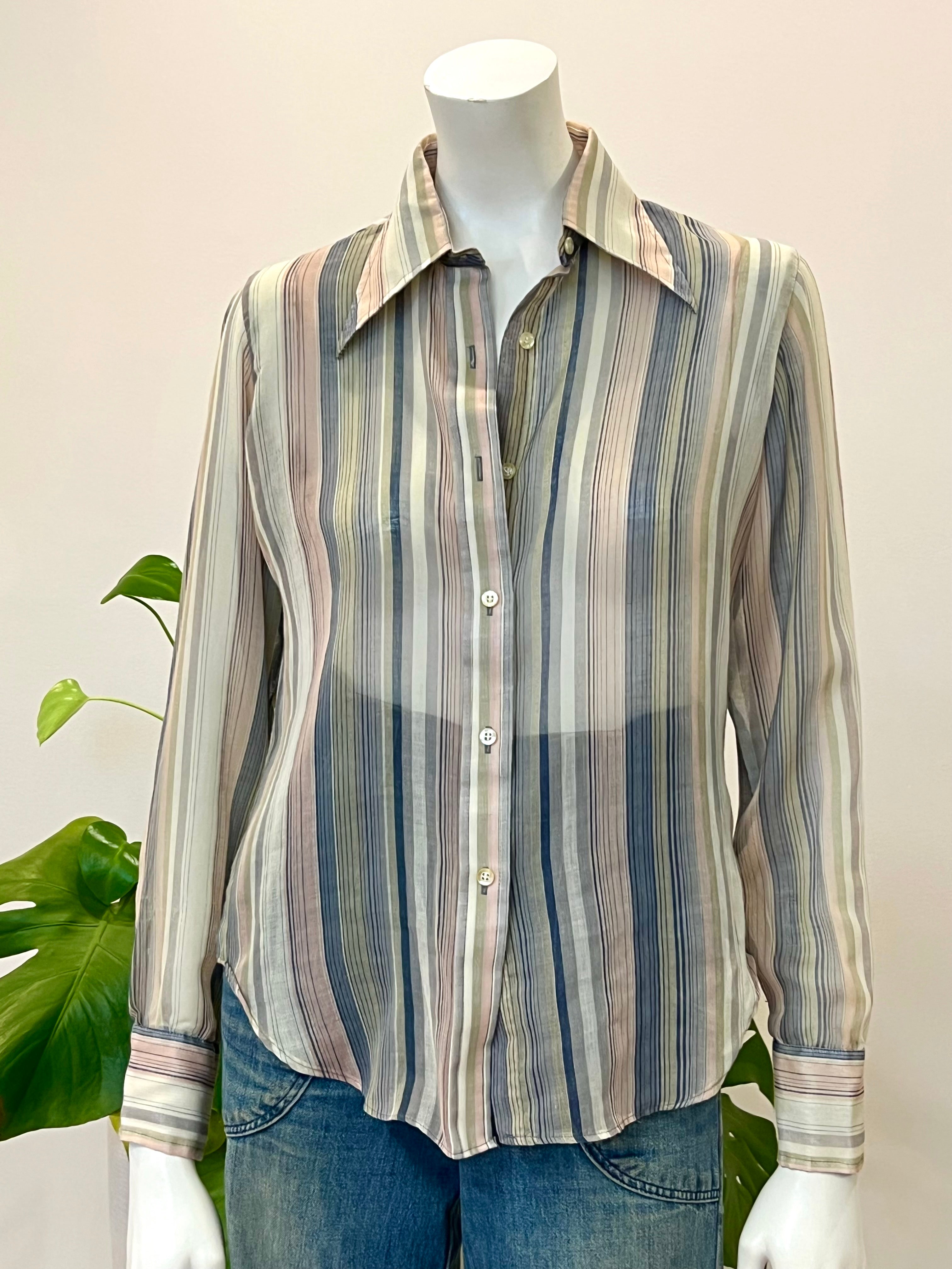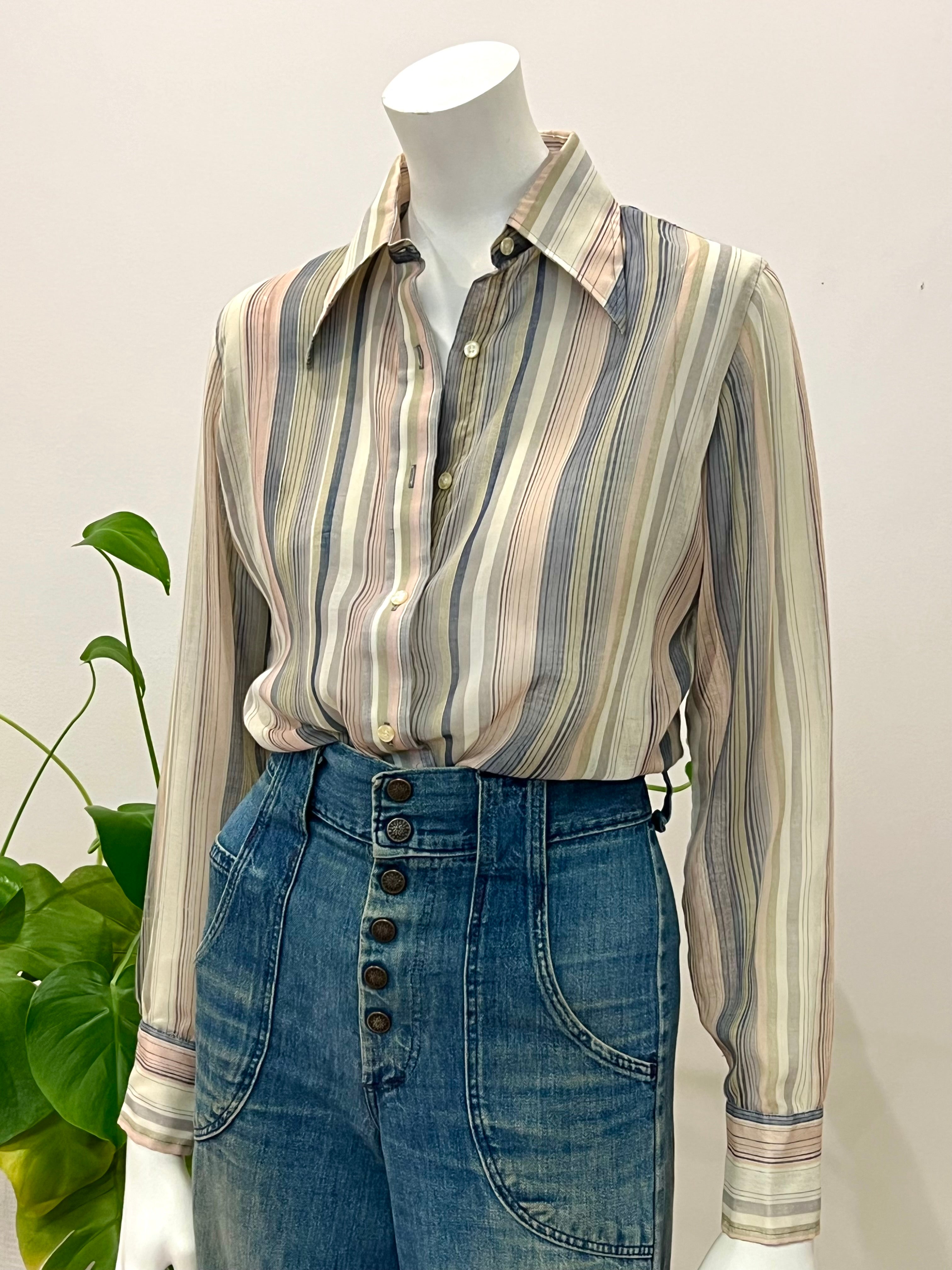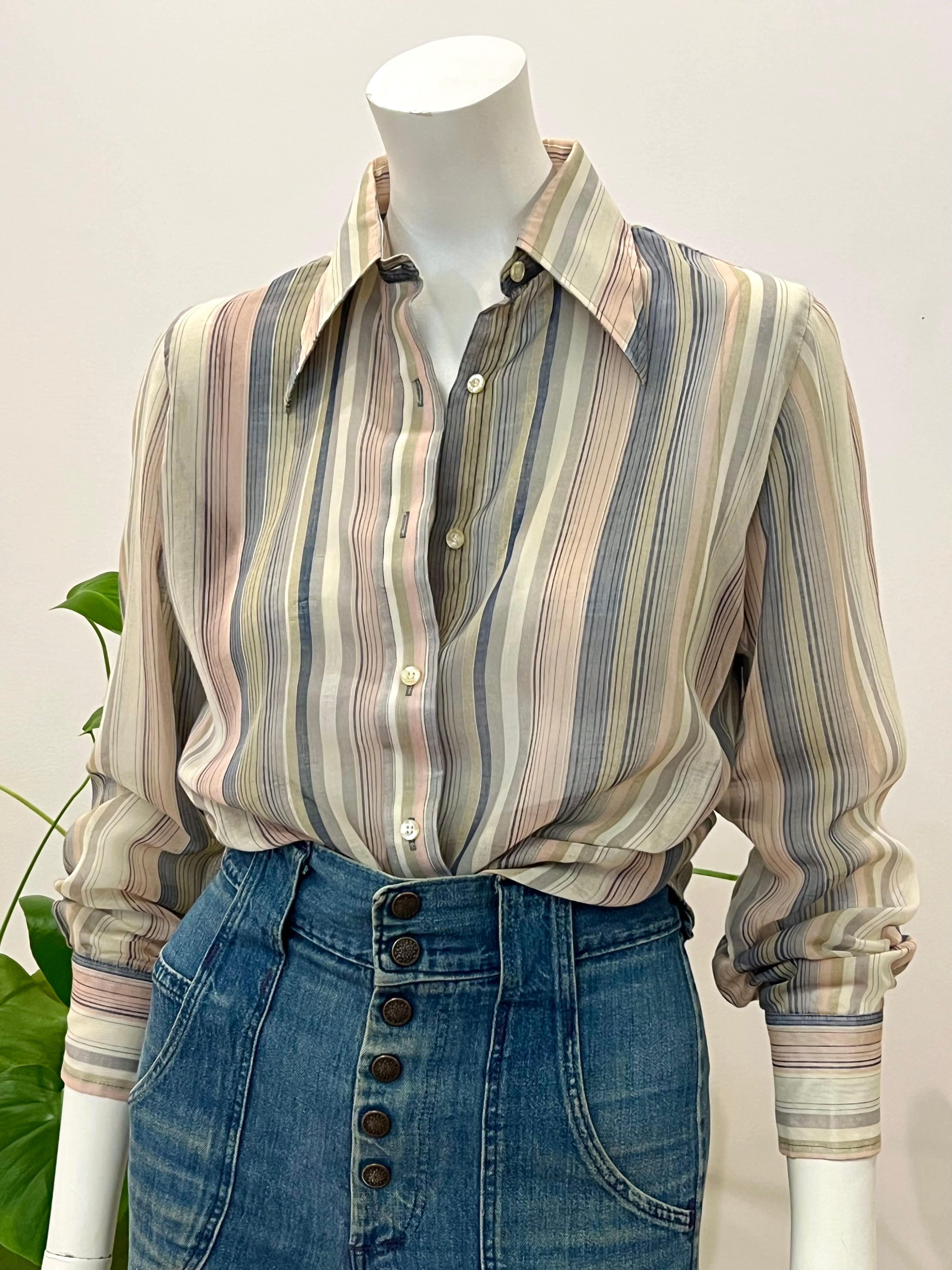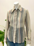 vintage Stuart Lang pale pastel grey striped sheer blouse 70s