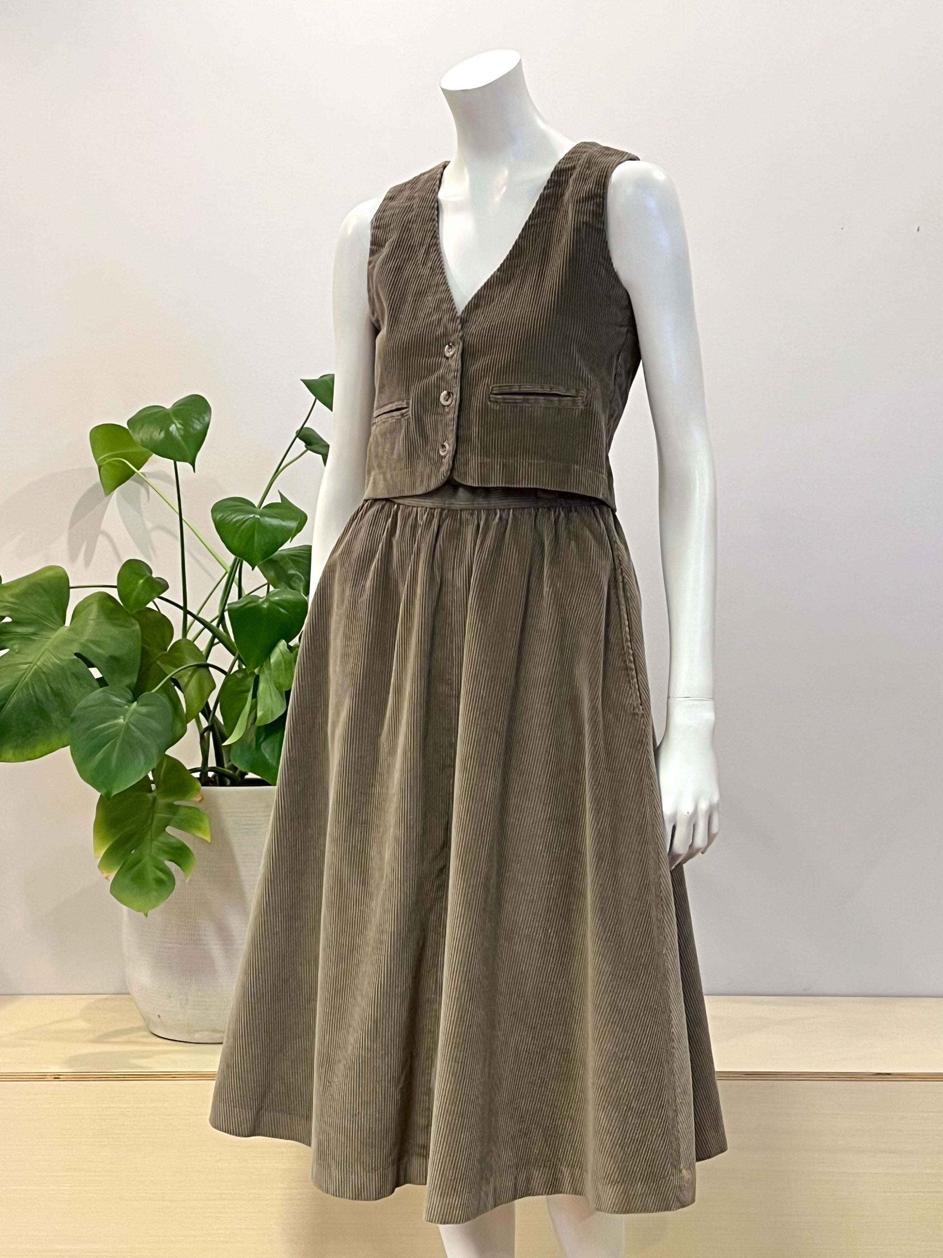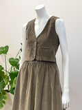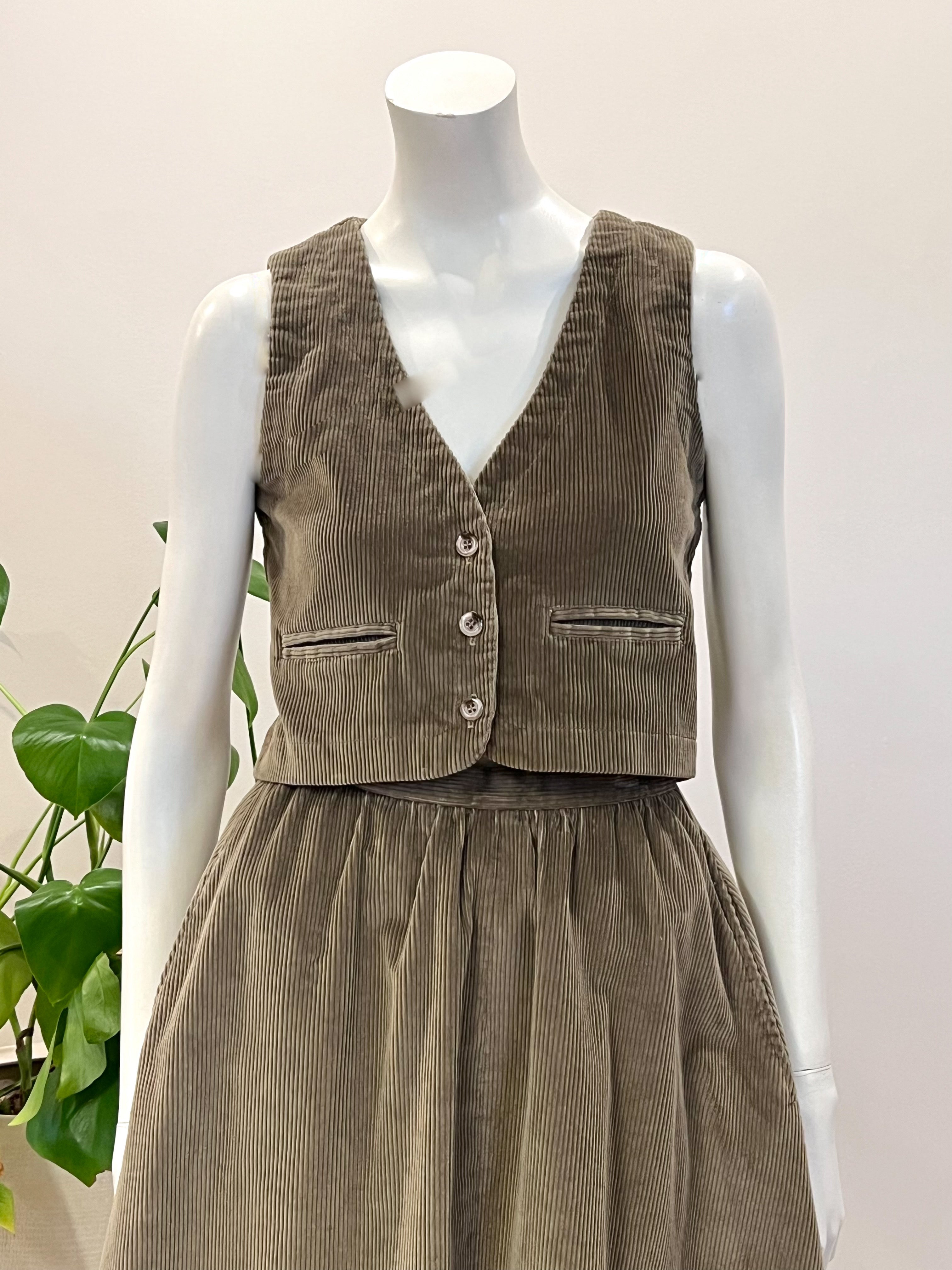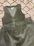 vintage dusty olive corduroy vest & skirt suit 70s