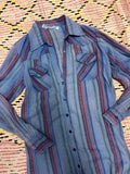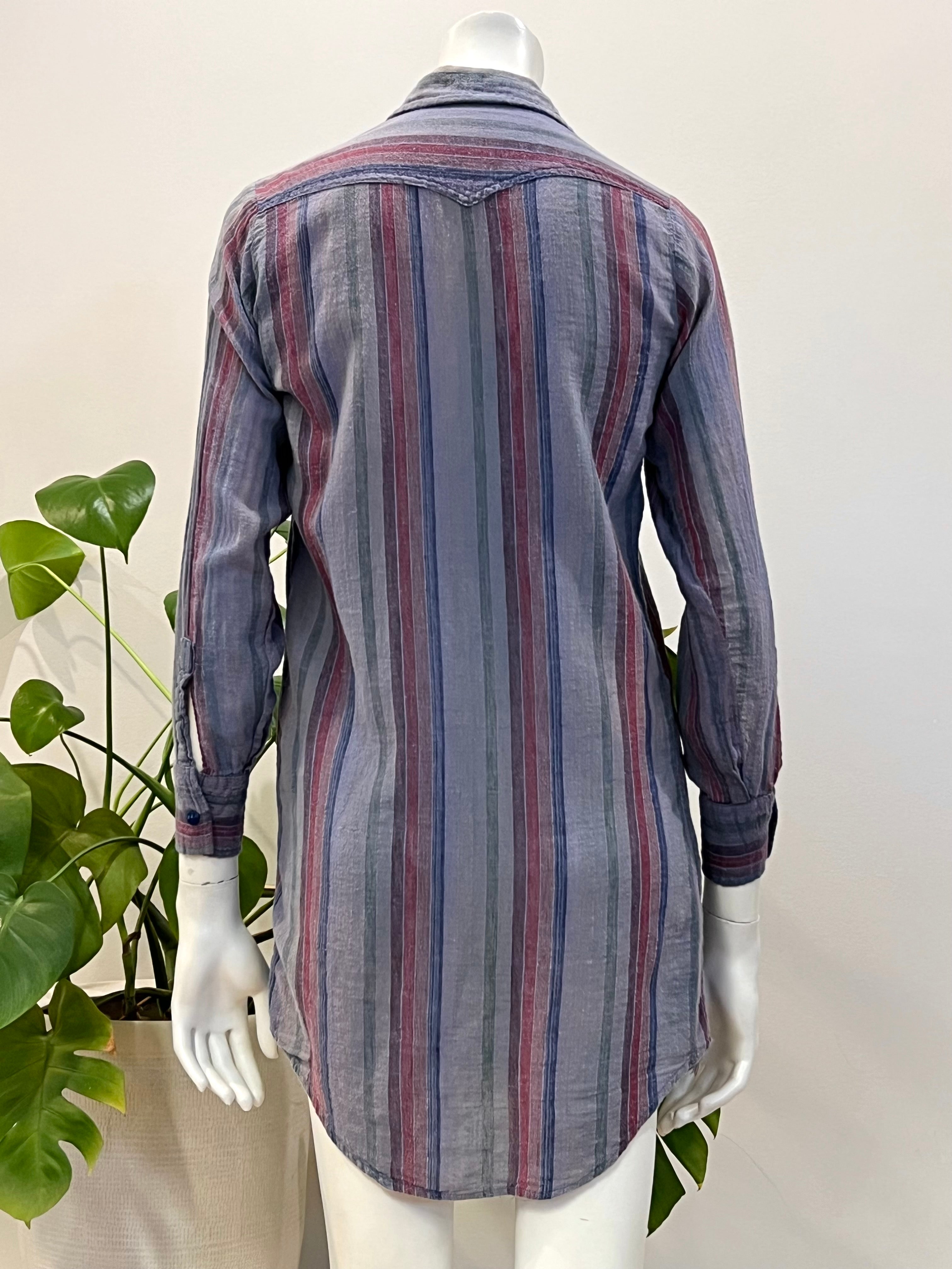 vintage blue Indian cotton gauze striped tunic shirt dress 70s