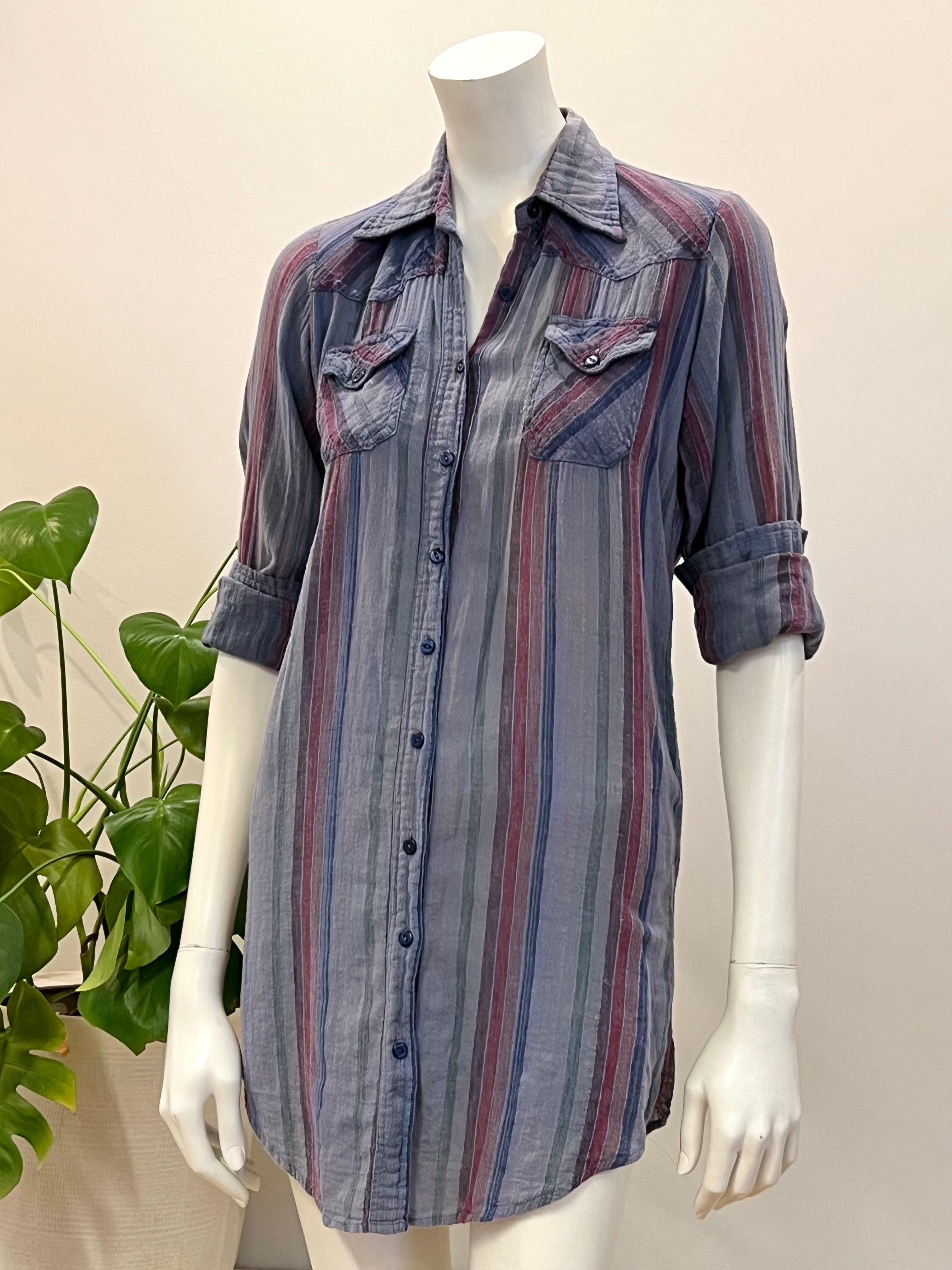 vintage blue Indian cotton gauze striped tunic shirt dress